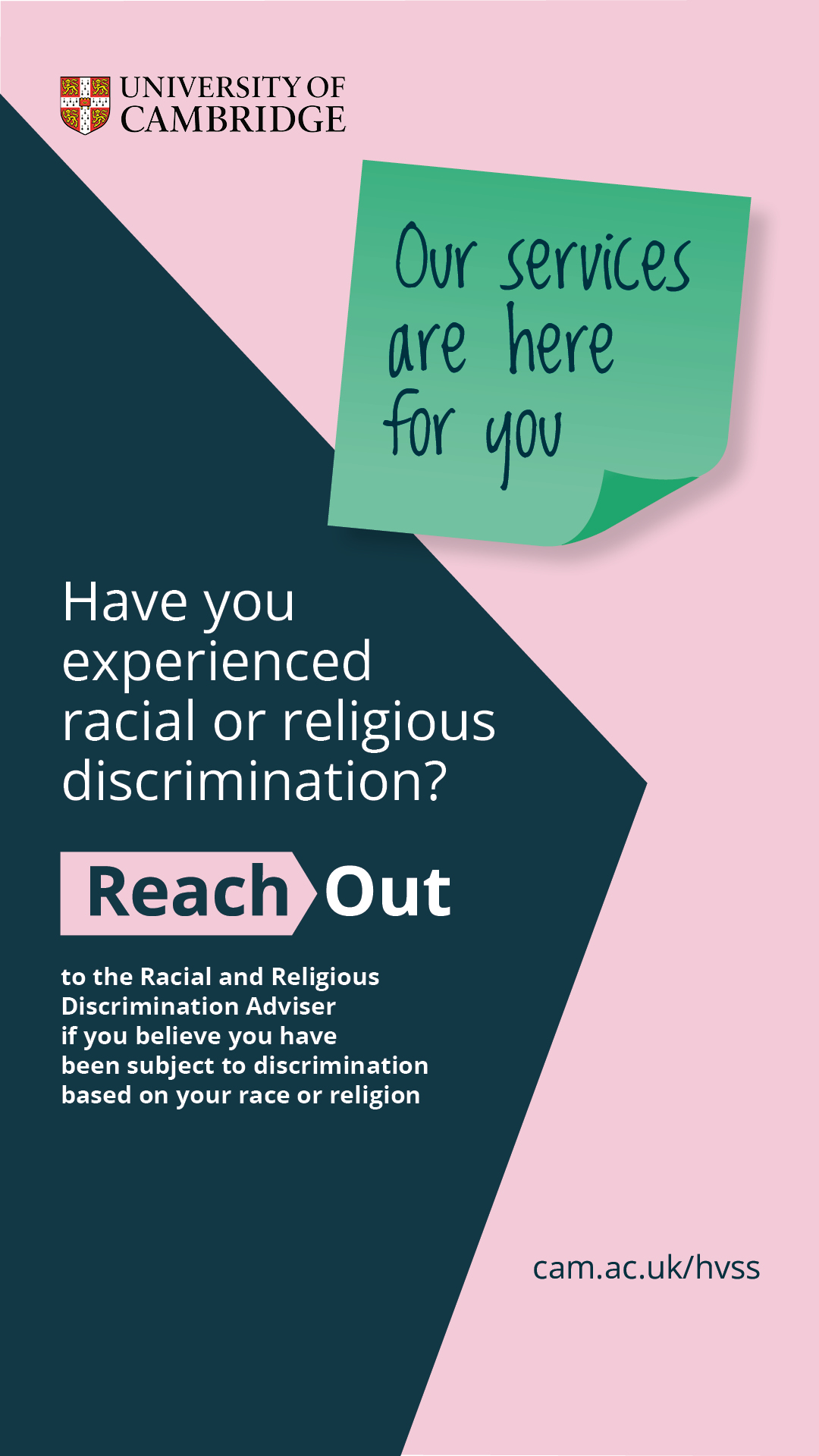- From the University Racial and Religious Discrimination Adviser through HVSS or see a counsellor through UCS. The Racial and Religious Discrimination Adviser (within HVSS) can provide the following: